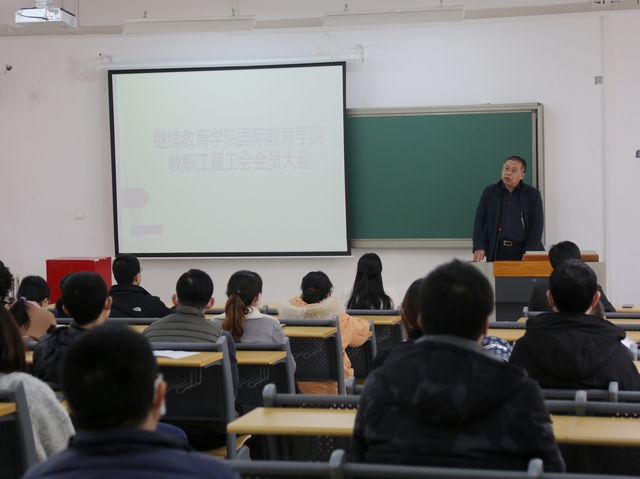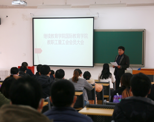 2021年3月10日下午,继续教育学院、国际教育学院在房山分校召开教职工暨工会会员大会,全体教职工参加会议,大会由党总支书记徐承俊主持。