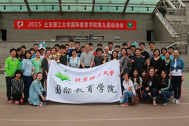 2015年4月28日上午八点半,北京理工大学国际教育学院第九届运动会在学校东操场隆重举行。国际教育学院院长梅文博、继续教育学院党总支书记罗佳、国际教育学院副院长蒋志湘、综合办公室主任蒋敏荣、教学办公室主任李丽珊、学生工作办公室主任刘峥以及学院全体师生出席了开幕式。
