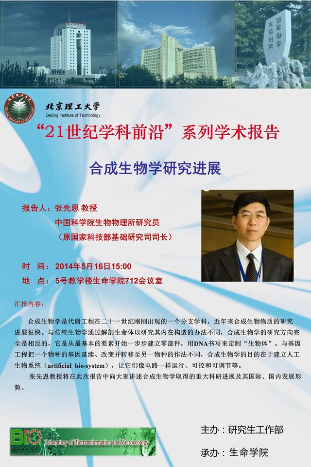 “21世纪学科前沿”系列学术报告——张先恩教授“合成生物学研究进展”讲座