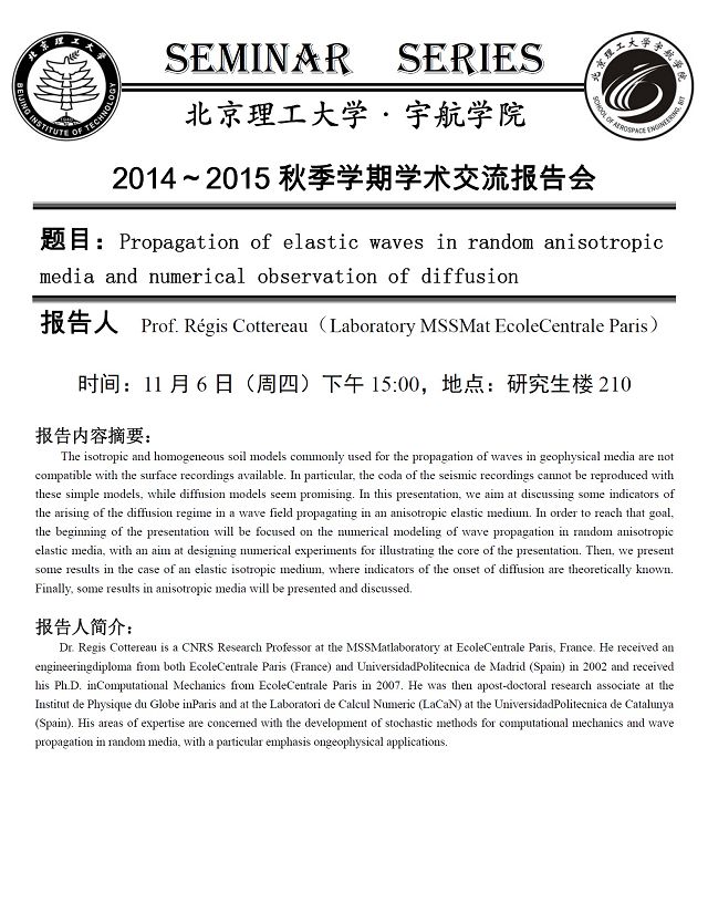 宇航学院11月6日学术报告预告