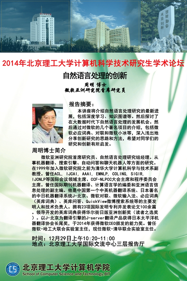 2014年北京理工大学计算机科学技术研究生学术论坛大会报告预告-2