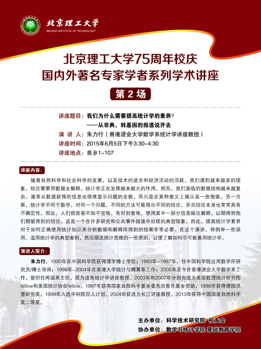 我们为什么需要提高统计学的素养?——北京理工大学75周年校庆国内外著名专家学者系列学术讲座(第二场)