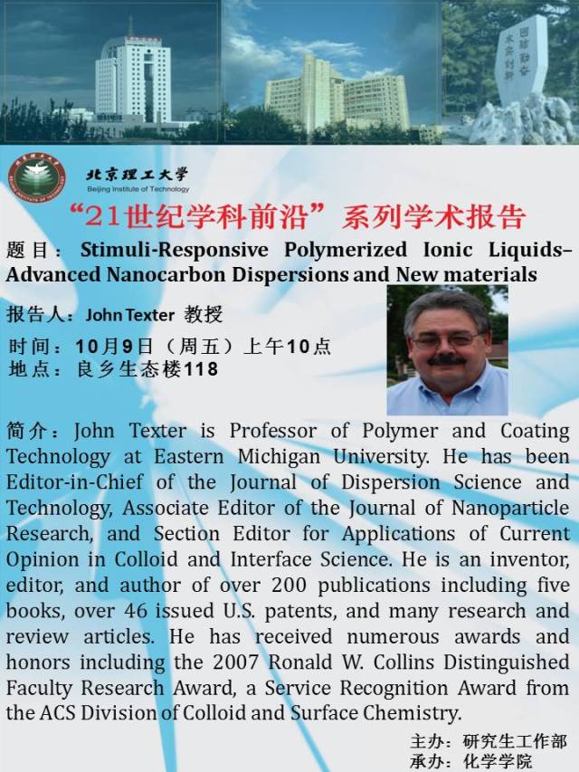 【化学学院】“21世纪学科前沿”John Texter教授学术报告通知