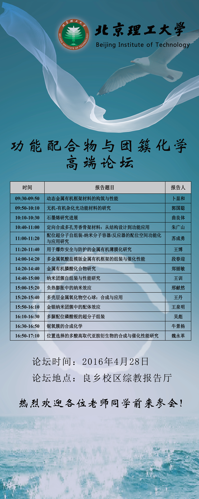【化学学院】功能配合物与团簇化学高端论坛