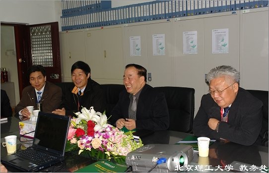 2007年11月15日,评估专家组副组长周玉,评估专家组成员张湘伟、裘松良、傅丰林、曾志新、罗正祥、高占先、袁军堂在联络员的陪同下先后莅临教务处,指导本科教学管理工作。校长助理兼教务处处长庞思勤向专家汇报了近几年教务处的工作情况和取得的成绩,副处长闫达远、韩宝玲就专家提出的问题作出了详尽的回答,并就教学改革、教务管理等相关问题和专家们进行了交流。参加会议的还有教研科科长明道福、质量科科长张丽娜、教务科科长张玮、教育培训管理办公室主任方萍、综合科科长杨亚楠。