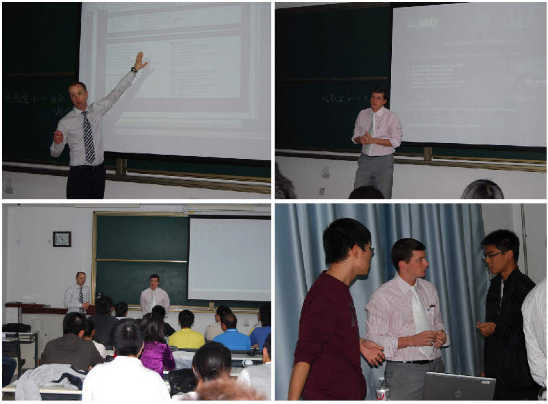 首先向两位来访人员介绍了我校的基本情况,然后介绍了我校与澳大利亚国立大学双学位项目进展情况,截止到目前为止,已有10名同学赴澳大利亚国立大学参加双学位项目,2008级有41名同学参加项目,2009级已有49名同学报名参加项目。