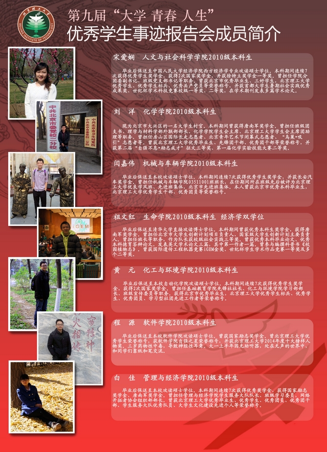 关于举办北理工第九届“大学 青春 人生”优秀学生事迹报告会的通知
