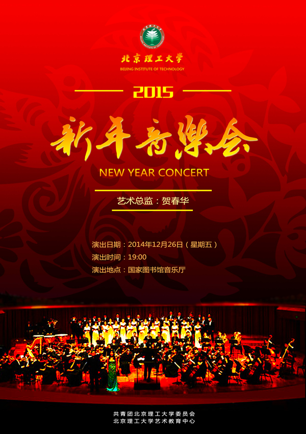 北京理工大学2015新年音乐会将于2014年12月26日19:00在国图音乐厅上演,敬请关注。