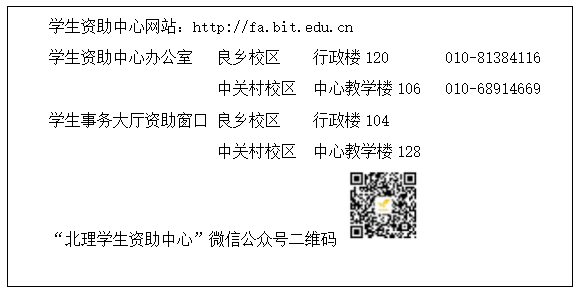 请申请校园地助学贷款和办理生源地贷款的同学注意时间节点。相关信息会在学生资助中心网站、“北理学生资助中心”微信公众号上公布。