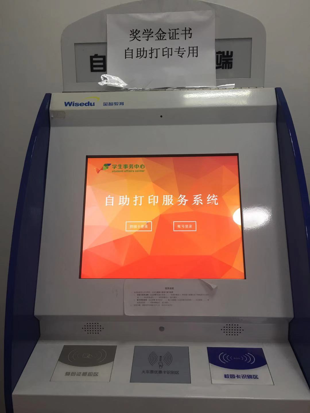 1.奖学金自助打印机上有“奖学金证书打印专用”标识;