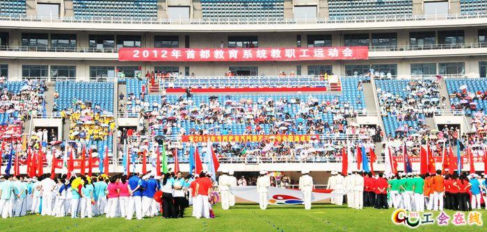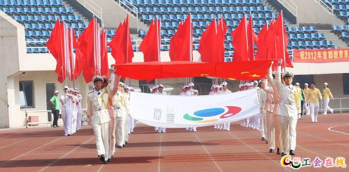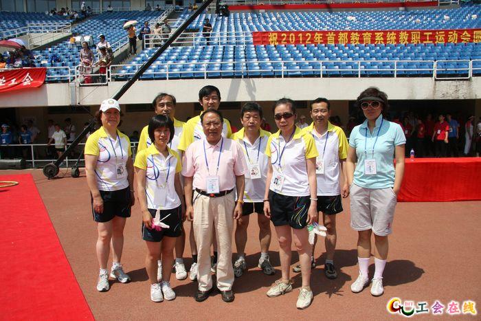 5月26日,2012年首都教育系统教职工运动会开闭幕式在奥体中心隆重举行,来自首都各高校、各区县的8000名教职工代表参加了体育比赛和风采展示。北京市委常委、市人大常委会副主任、市总工会主席梁伟,北京市委常委、市委教育工委书记赵凤桐,中国教科文卫体工会主席万明东,北京市总工会党组书记、副主席曾繁新,北京市教委主任姜沛民,北京市委教育工委常务副书记刘建,北京市体育局副局长孙学才,北京市教育工会主席史利国,各高校、各区县教育系统的党政领导出席了开幕式。我校党委副书记、副校长李和章出席了开幕式。我校教职工代表队荣获高校甲组团体总分第七名的好成绩,并获得了体育道德风尚奖和优秀组织奖等荣誉。