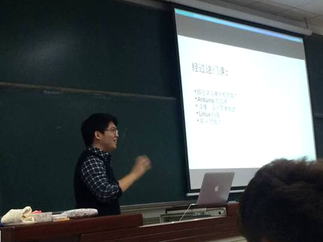 赵家樑被同学们称为“大神”,并不仅仅是出于对他优异成绩的“膜拜”,更重要的是对他带领大家共同在学习上“奔小康”的钦佩。 单片机操作是各种科技创新活动必备的基础知识,不少同学都有提前于教学计划学习的需求。作为BIT机器人创新基地科技部部长的赵家樑,系统自学并结合实践掌握了单片机的相关知识。看到同学们的学习需求,赵家樑就自己办起了单片机讲座,每周一堂课,一学期9次课,而且他还给自己的单片机讲座添加了不少有趣、新鲜的元素,“我把自己的个人主页拿出来,给大家讲怎么搭建服务器,怎么用服务器离线下载,还把投影仪直接连到单片机上,用单片机给大家放幻灯片”。生动有趣的讲座,不仅得到低年级同学的欢迎,甚至还有高年级学长跑来听课。