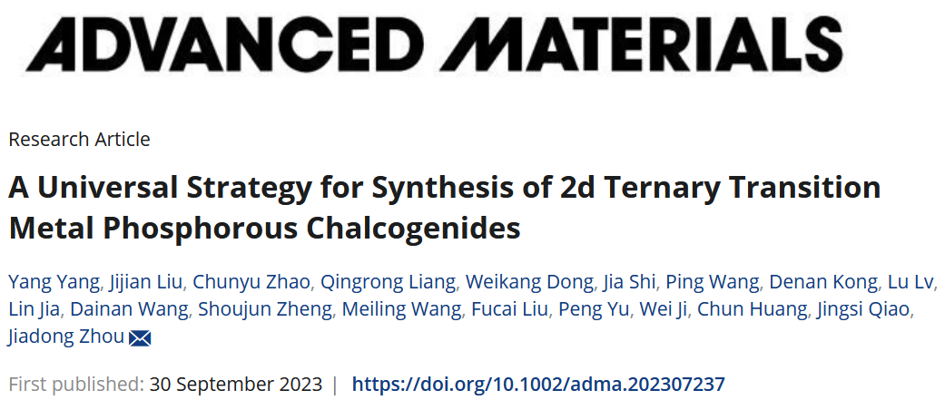 北理工团队在二维过渡金属磷硫化合物可控合成方面取得重要进展